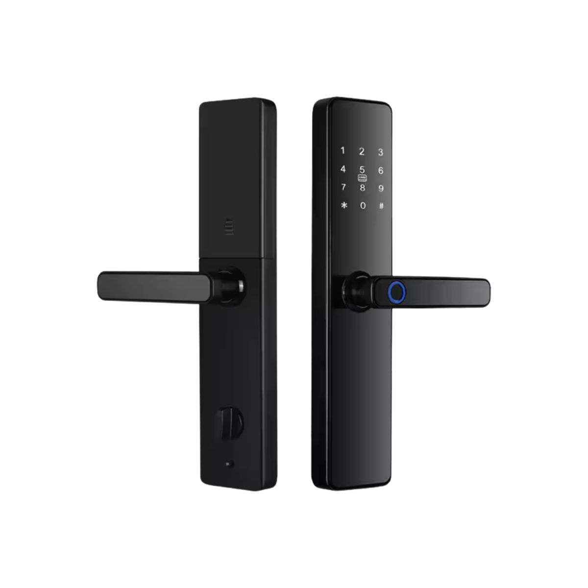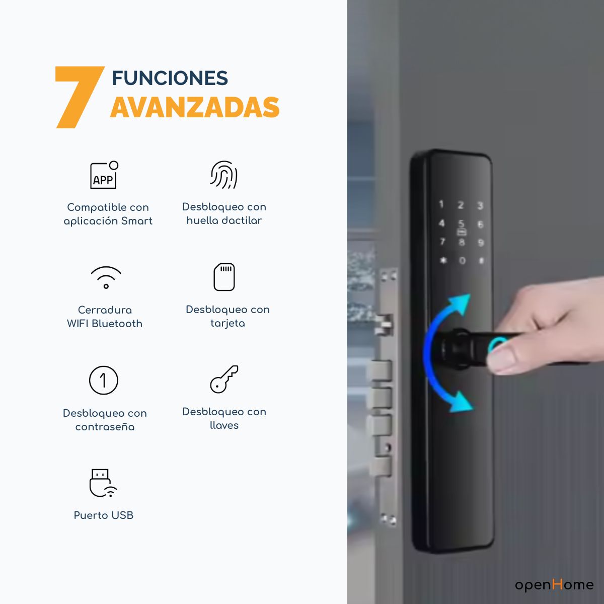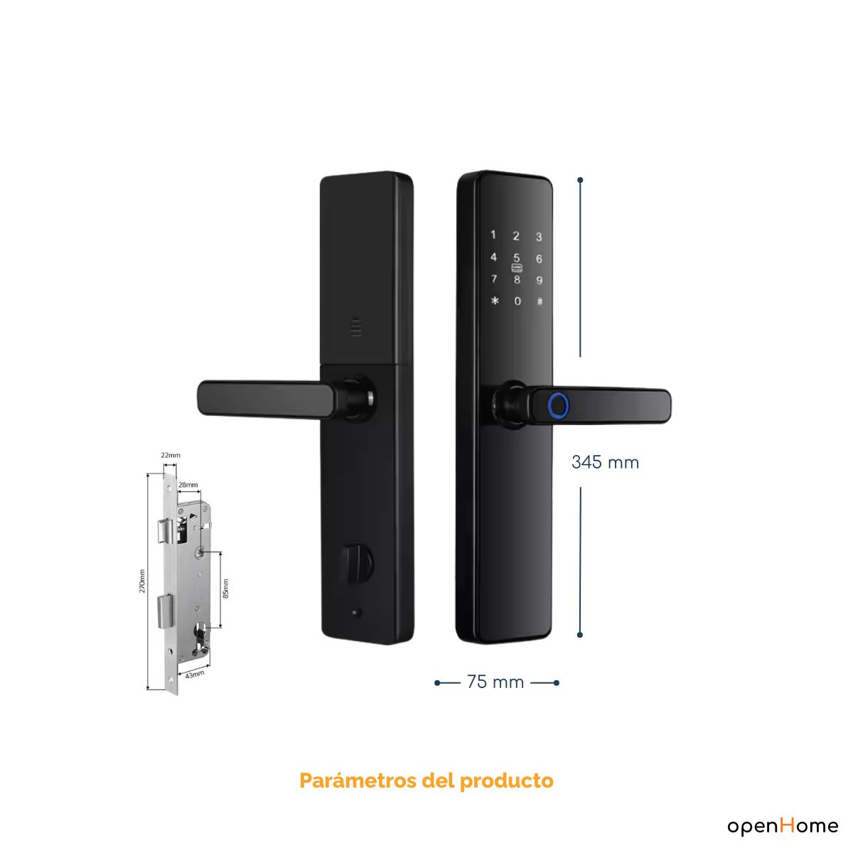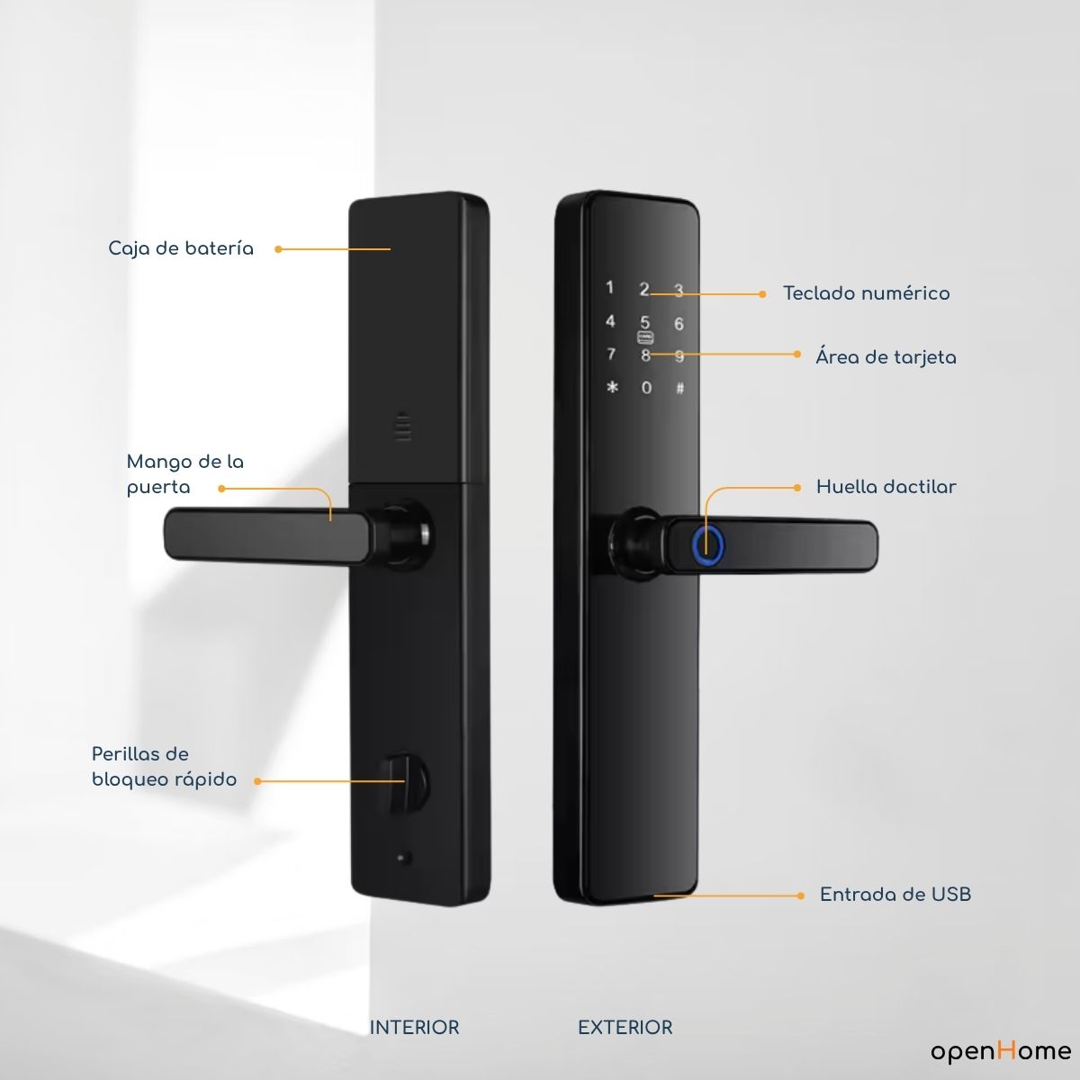Nuestra cerradura tiene integrada un lector biométrico de huellas digitales, sobre el pestillo de la puerta, la cual facilitara tu acceso. Simplemente al llegar, apoyas el dedo en el pestillo y ella te reconocerá. Puede recordar hasta 70 personas.